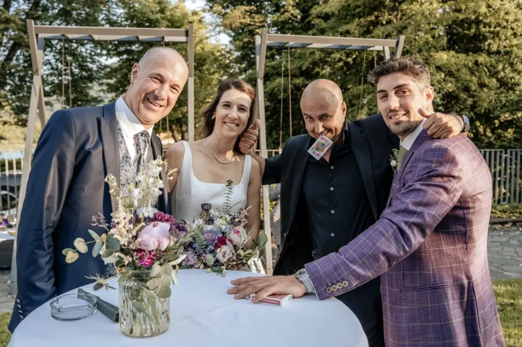 Ringe erscheinen in Glaskuppeln, Monogramme glimmen auf Karten, der Hochzeitstanz endet mit Funkenregen. Jack integriert Trauzeugen, Liebesbotschaften und Wunschmusik – so wird Magie zur Liebesgeschichte des Paares.